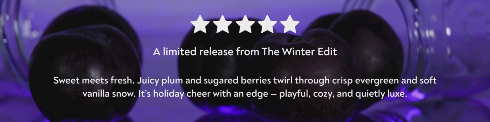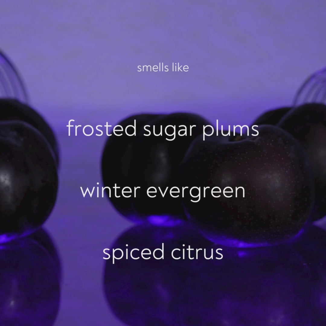 Smells like: Sugared Plum, Mandarin Peel, White Musk, Frosted Greens, Spiced Citrus